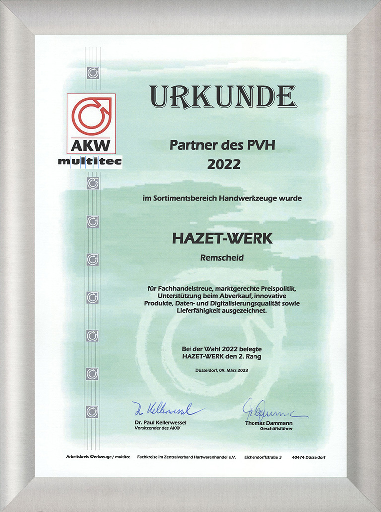 HAZET ist ein deutsches Unternehmen. Wir entwickeln und stellen hochwertige Werkzeuge her. Seit dem Beginn im Jahr 1868 steht HAZET als Symbol für Qualität, Zuverlässigkeit und Innovation. Wir stehen für Präzision und Langlebigkeit. Unsere Produkte sind doppelt nachhaltig.