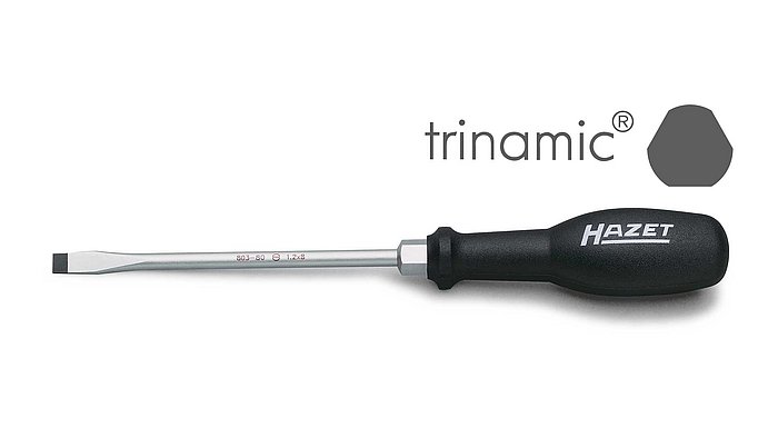 Die Form lässt hohe Arbeitskräfte beim Betätigen einer Verschraubung zu und dient gleichzeitig als Schutz gegen unkontrollies Wegrollen des Schraubendrehers.