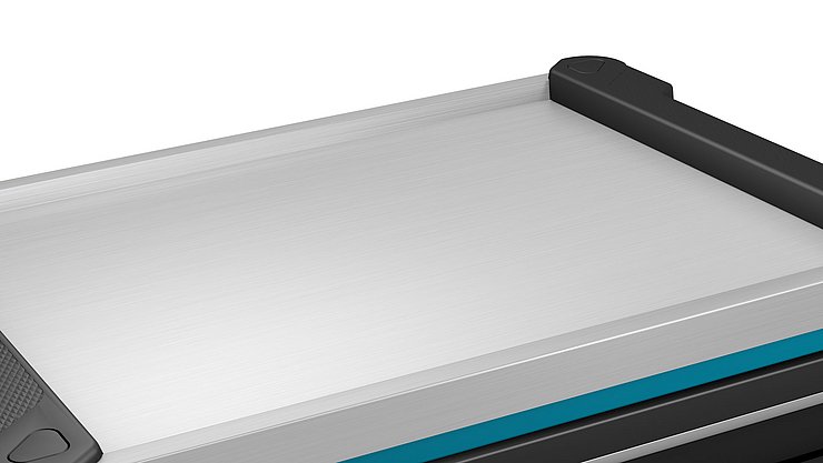 Optimierter, nachgebender Kantenschutz an allen vier Ecken mit echtem Aufprallschutz durch innenliegendes Dämpfungskonzept