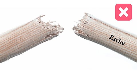 - Die langfaserige Holzstruktur hält den Stiel bei Beschädigung noch zusammen
