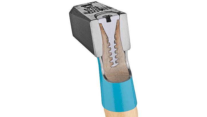 - Selbst bei Alterung des Holzstiels wird Wegfliegen des Hammerkopfes verhindert