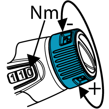 Durch Drehen des Handgriffes das gewünschte Drehmoment einstellen.