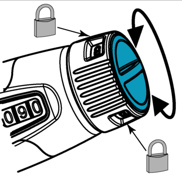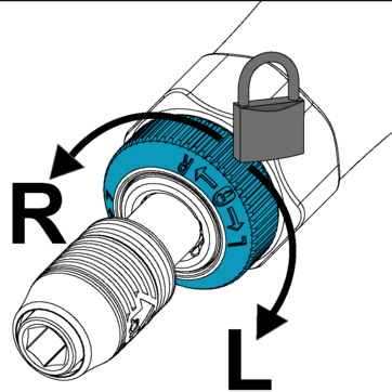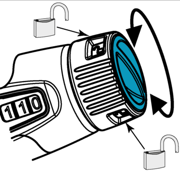 Drehen der Sicherheitsverriegelung nach rechts →