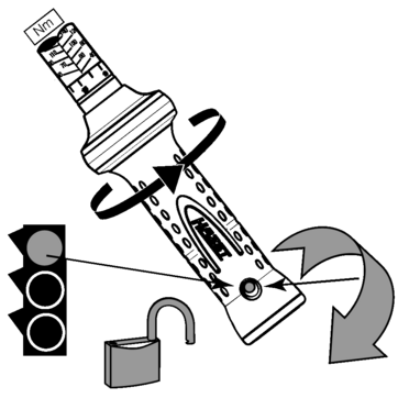 Kalibrierte Drehrichtung (im Uhrzeigersinn) Auslösemoment = eingestellter Wert