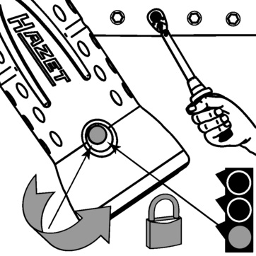Sichern durch Verdrehung der Sicherheitsverriegelung nach links ←.