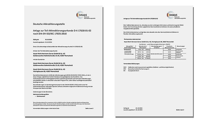 Unser Kalibrierlabor ist akkreditiert von der Deutschen Akkreditierungsstelle GmbH (Nat. Akkreditierungsstelle Deutschlands, Berlin, kurz DAkkS). Wir können nicht nur den Bereich Drehmoment, sondern auch den Bereich Drehwinkel kalibrieren. Damit decken wir den kompletten Funktionsbereich unserer anzeigenden (sTAC) sowie unserer auslösenden Drehmomentschlüssel ab. Zu jedem kalibrierten Schlüssel erhältst Du einen Kalibrierschein.