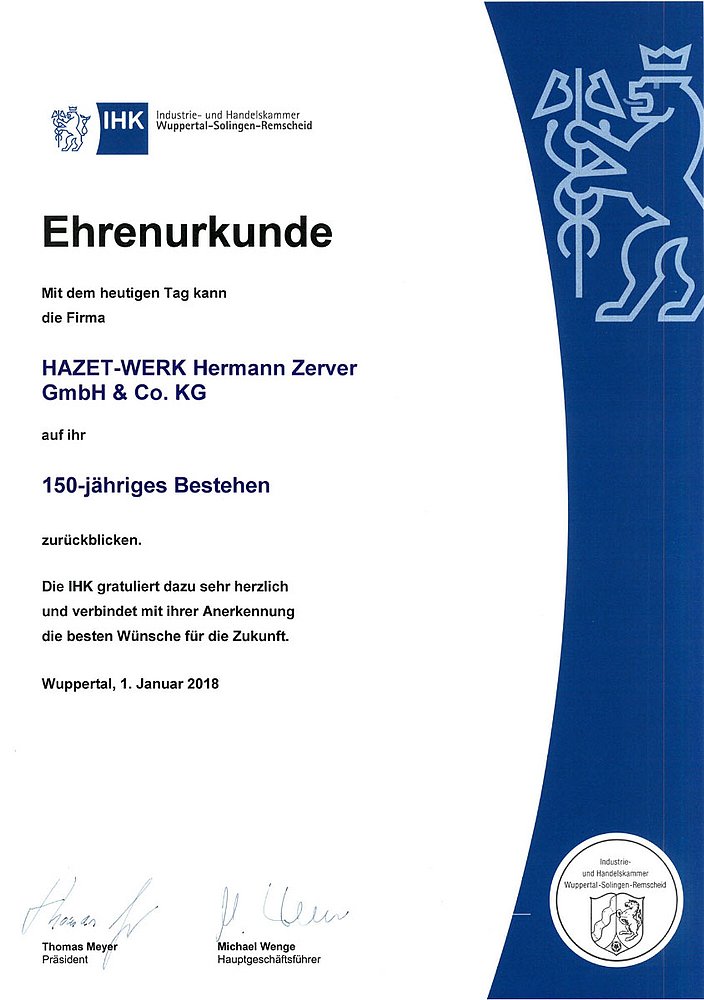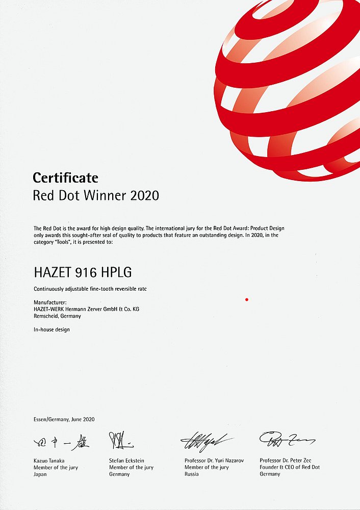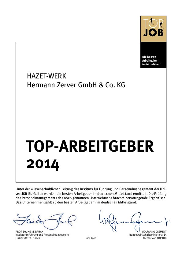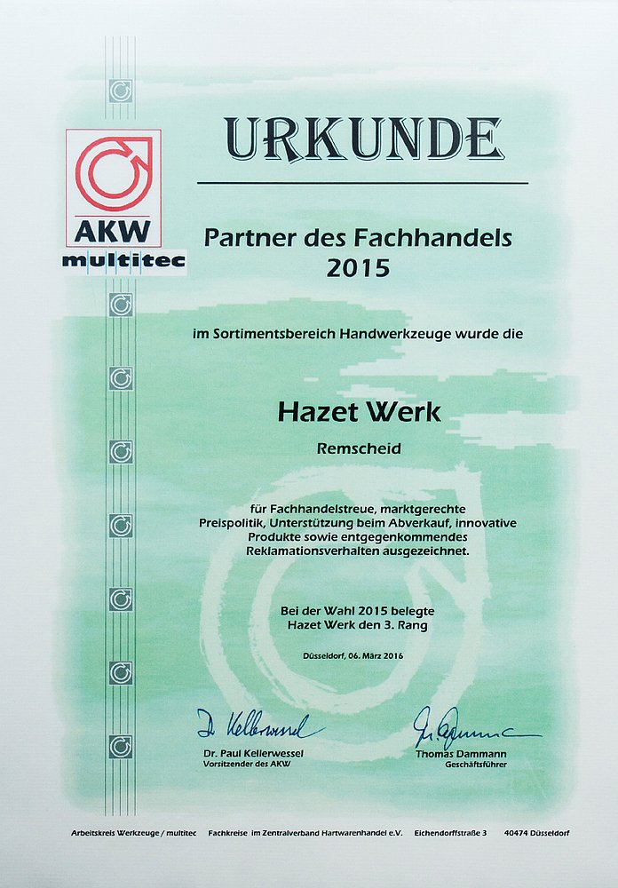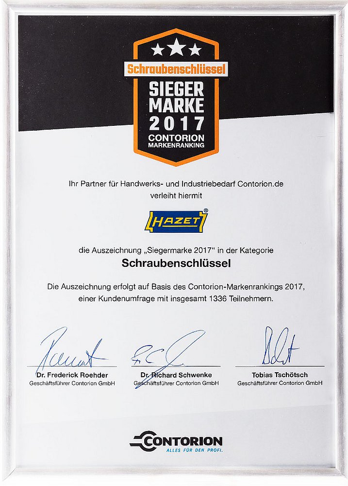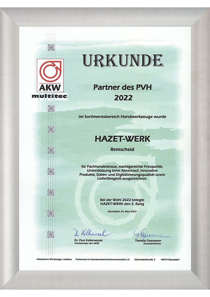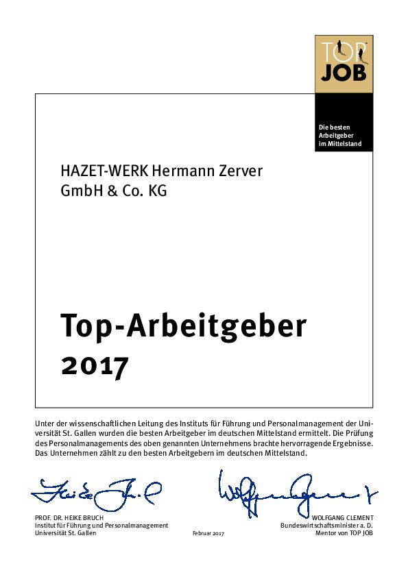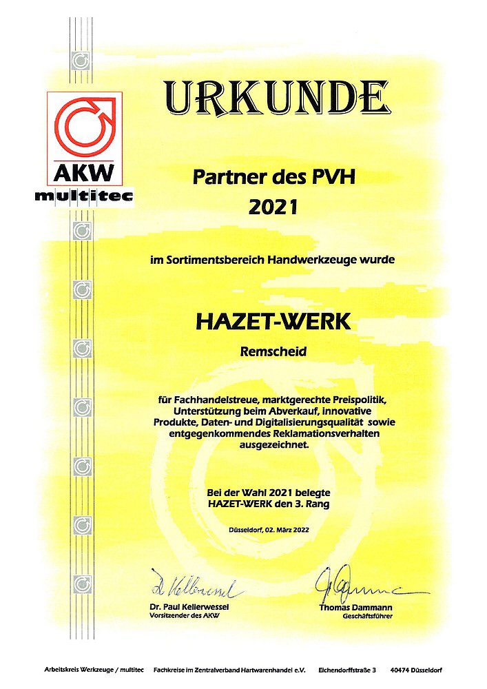 Hier wählten allein die Leser der Zeitschrift „Motorrad“ HAZET 18 mal in Folge als beste Werkzeugmarke! Im Bereich Personal wurde HAZET zweimal als Top Arbeitgeber in den Jahren 2014 und 2017 ausgezeichnet sowie als hervorragender Ausbildungsbetrieb durch die IHK geehrt.