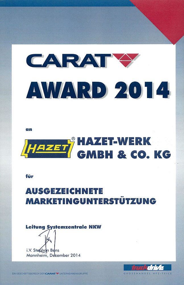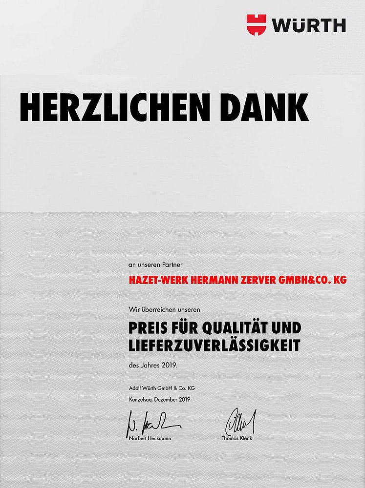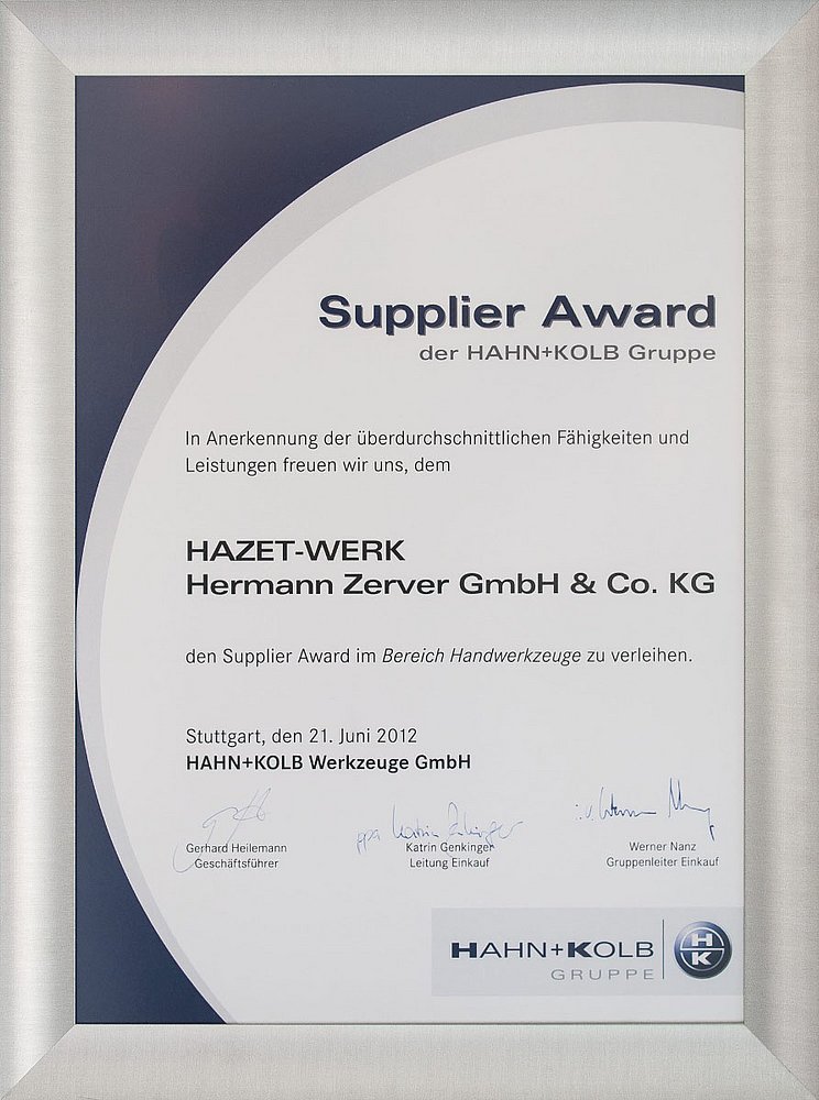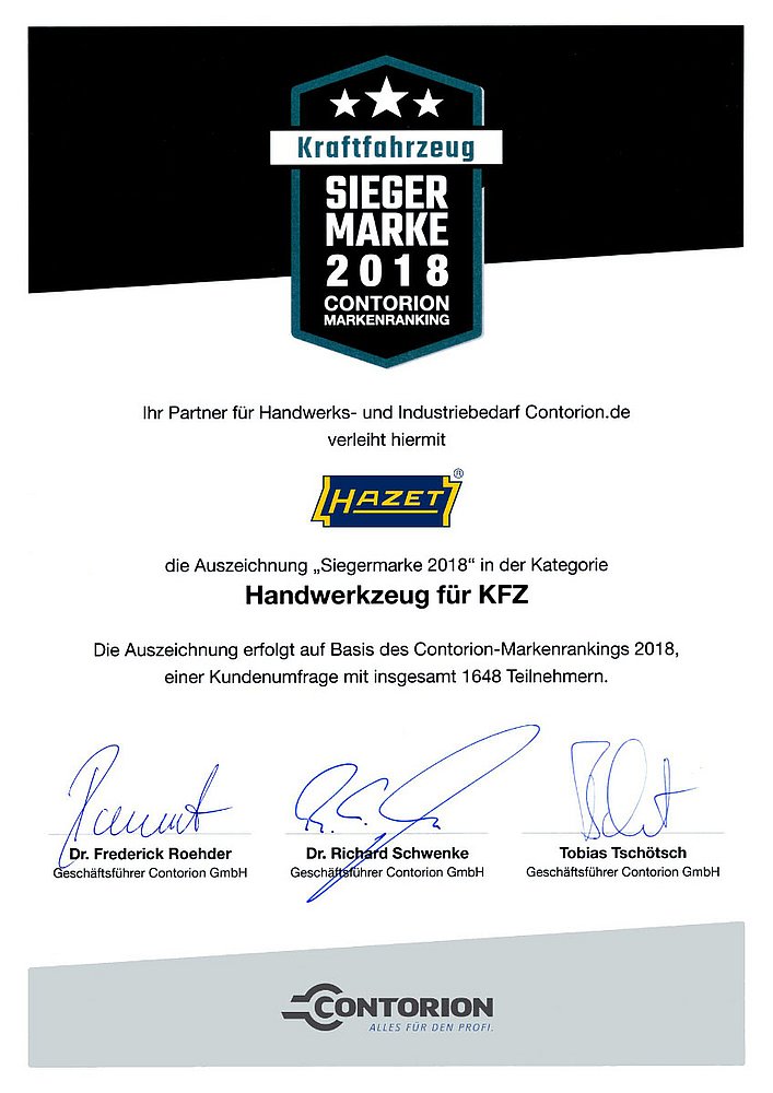 Bereits seit Jahrzehnten wird HAZET kontinuierlich ausgezeichnet. Diese Auszeichnungen sind so vielfältig wie das tägliche Schaffen unserer Mitarbeiter in den verschiedensten Unternehmensbereichen. Sind es die zahlreichen Produkt-Awards für herausragende Ingenieurskunst, Auszeichnungen unserer Kunden für überdurchschnittliche Leistungen als Top-Lieferant in Zuverlässigkeit, auf Messen, im Service oder als beste Marke in vielen Leserwahlen.