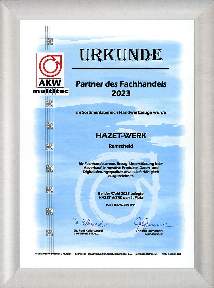 Bereits seit Jahrzehnten wird HAZET kontinuierlich ausgezeichnet. Diese Auszeichnungen sind so vielfältig, wie das tägliche Schaffen unserer Mitarbeiter in den verschiedensten Unternehmensbereichen. Sind es die zahlreichen Produkt-Awards für herausragende Ingenieurskunst, Auszeichnungen unserer Kunden für überdurchschnittliche Leistungen als Top-Lieferant in Zuverlässigkeit, auf Messen, im Service oder als beste Marke in vielen Leserwahlen.