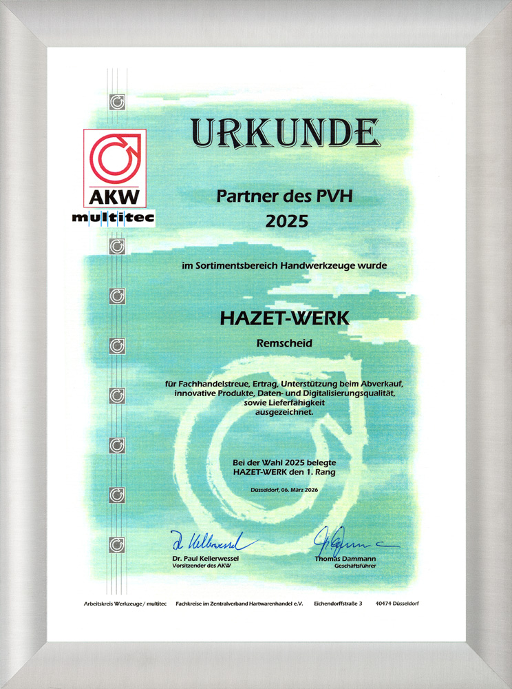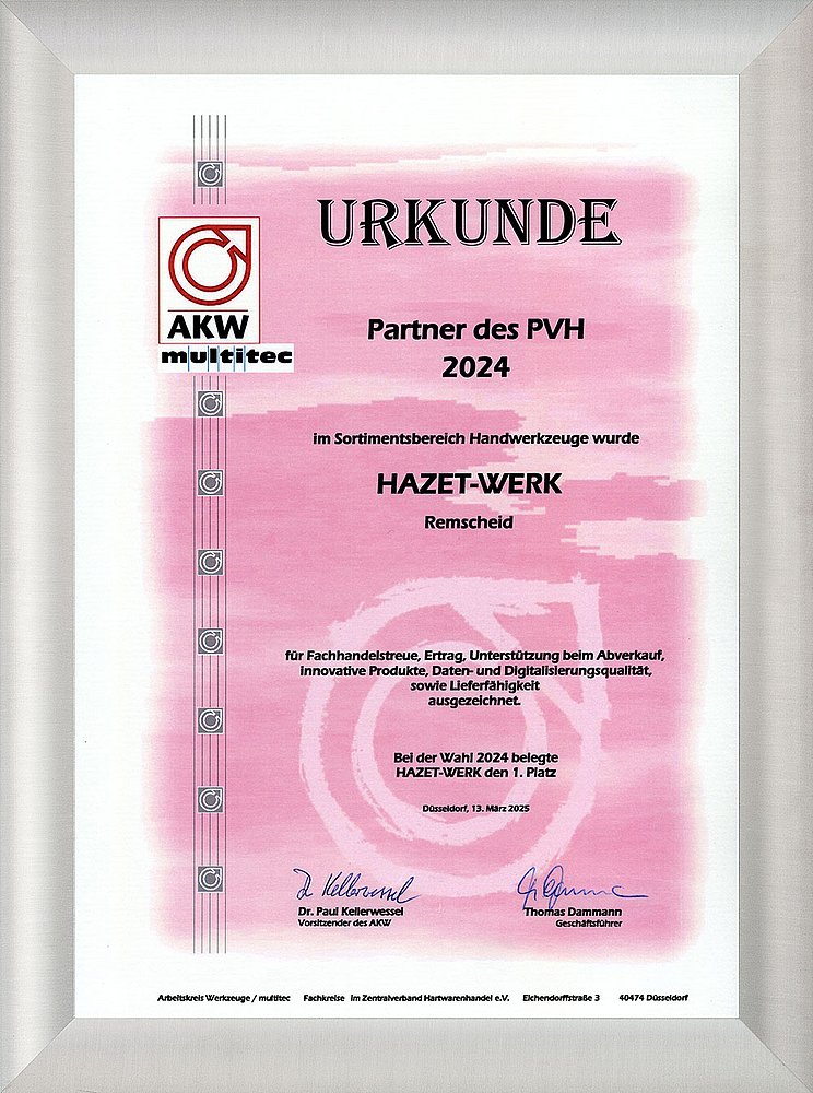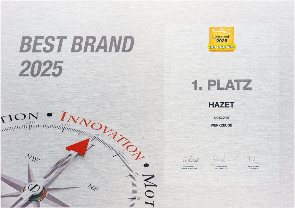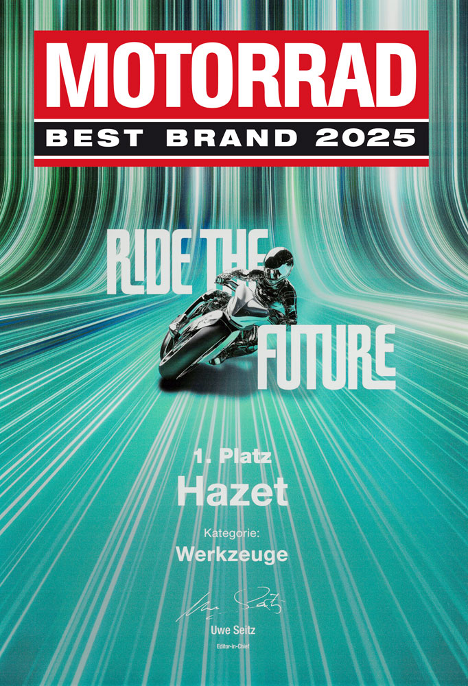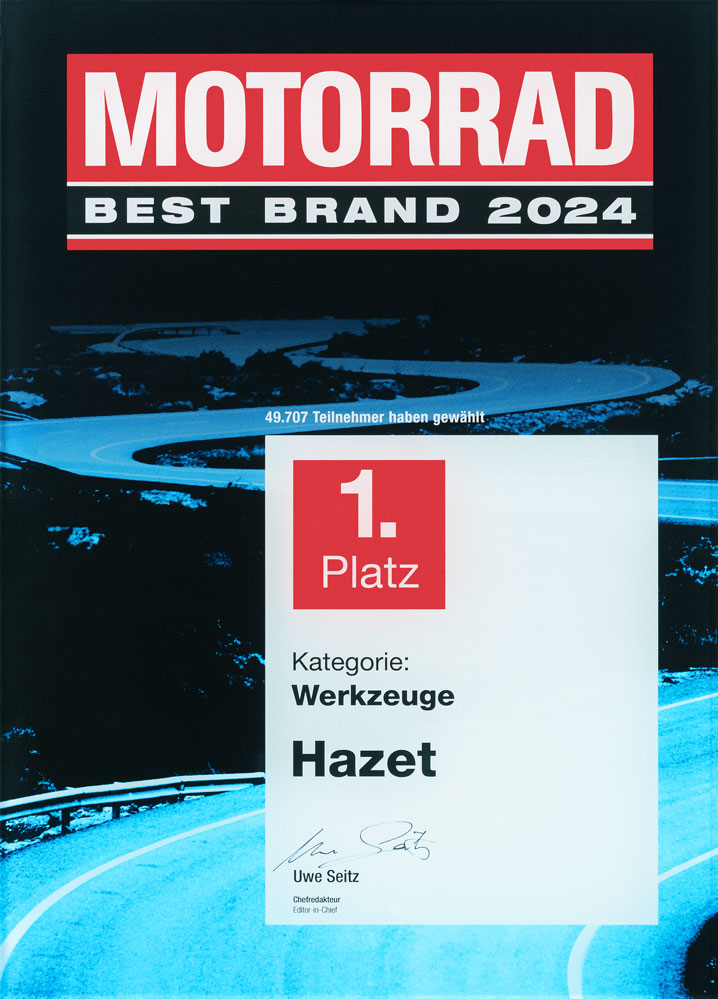 Hier wählten allein die Leser der Zeitschrift „Motorrad“ HAZET 20 mal in Folge als beste Werkzeugmarke! Im Bereich Personal wurde HAZET ebenfalls bereits zweimal als Top Arbeitgeber ausgezeichnet sowie als hervorragender Ausbildungsbetrieb durch die IHK geehrt.