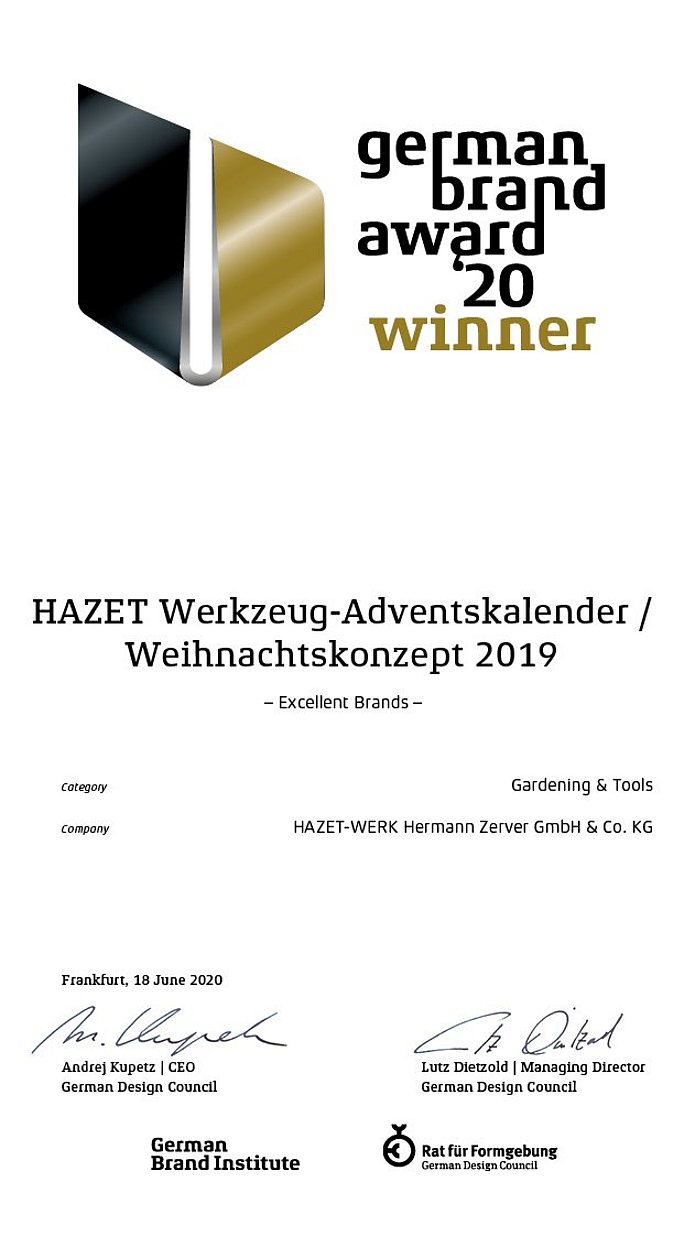 Der erste HAZET Werkzeug-Adventskalender kommt unter dem Namen „Santa Tools“ auf den Markt und wird direkt zu einem Erfolg. Das Konzept wird sogar mit den German Brand Award 2020 ausgezeichnet.