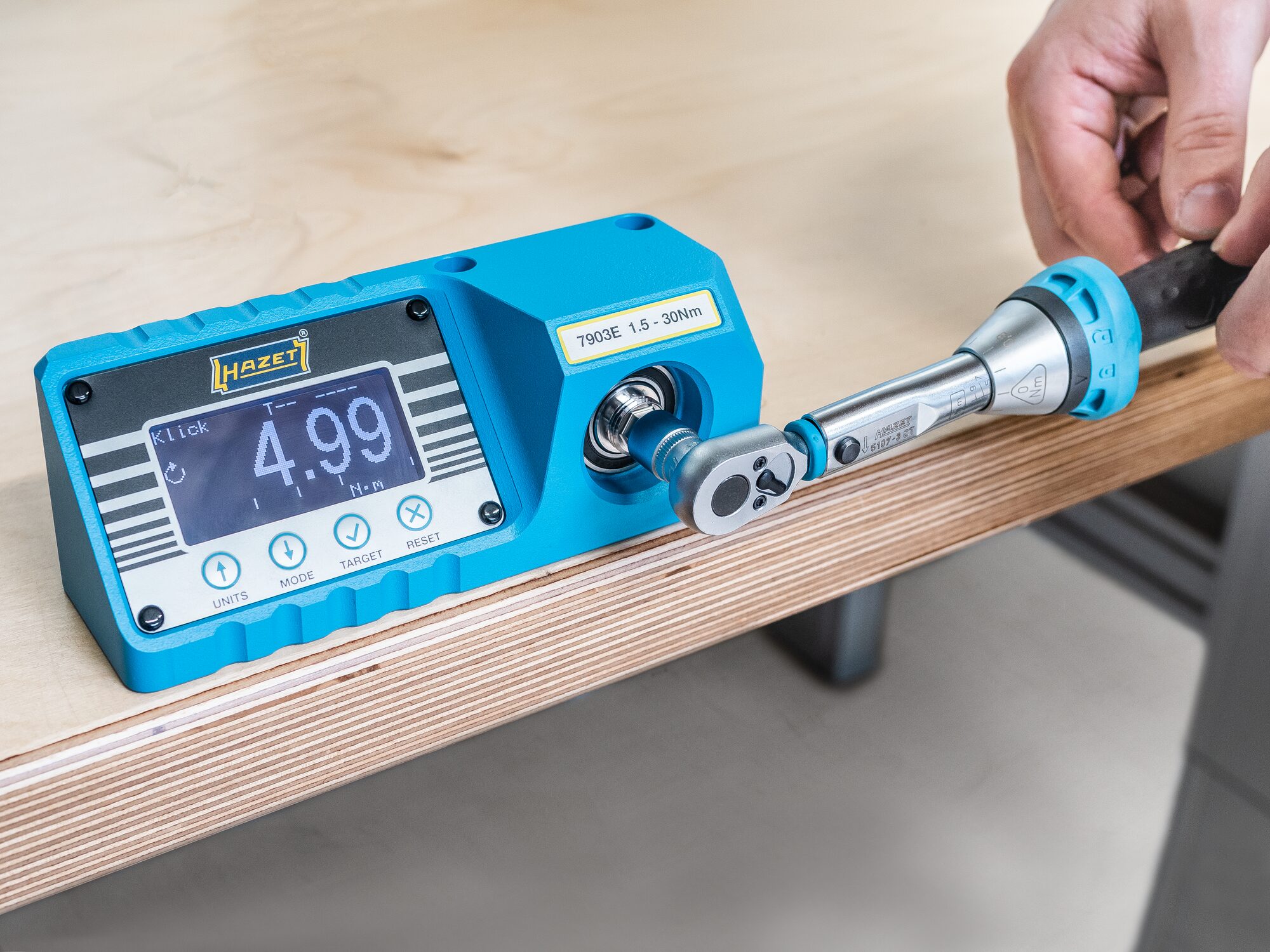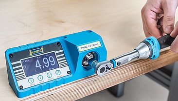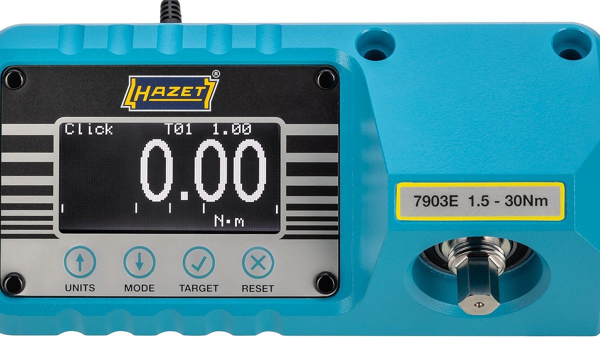 Das richtige Drehmoment lässt sich am Drehmomentschlüssel anhand von Drehmomenttabellen voreinstellen – aber liefert der Drehmomentschlüssel auch tatsächlich das angezeigte Drehmoment? Die neuen HAZET Drehmoment-Prüfgeräte 7901E, 7902E und 7903E bieten eine verlässliche Kontrollhilfe für Drehmomentschlüssel.
