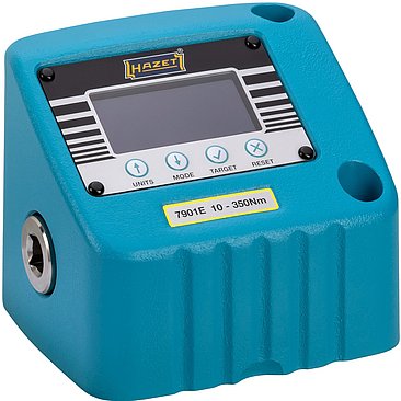 Die Messwerte sind auf dem großen LCD- Display gut ablesbar. Die Werte werden in einem Ampelsystem farblich dargestellt, um auf einen Blick zu zeigen, ob die Messwerte noch im Toleranzbereich der voreingestellten Drehmomentwerte liegen. Zusätzlich macht das Messgerät mit einem akustischen Signal auf Wertabweichungen aufmerksam. Eine Schnelltest-Funktion erlaubt eine spontane Überprüfung der Einstellung des Drehmomentschlüssels. Die Geräte sind außerdem kompatibel mit der HAZET Prüfsoftware Torque-Testing 7901E-D.