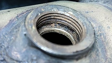 - Nachschneiden bzw. Reinigen des verrußten und beschädigten Gewindes