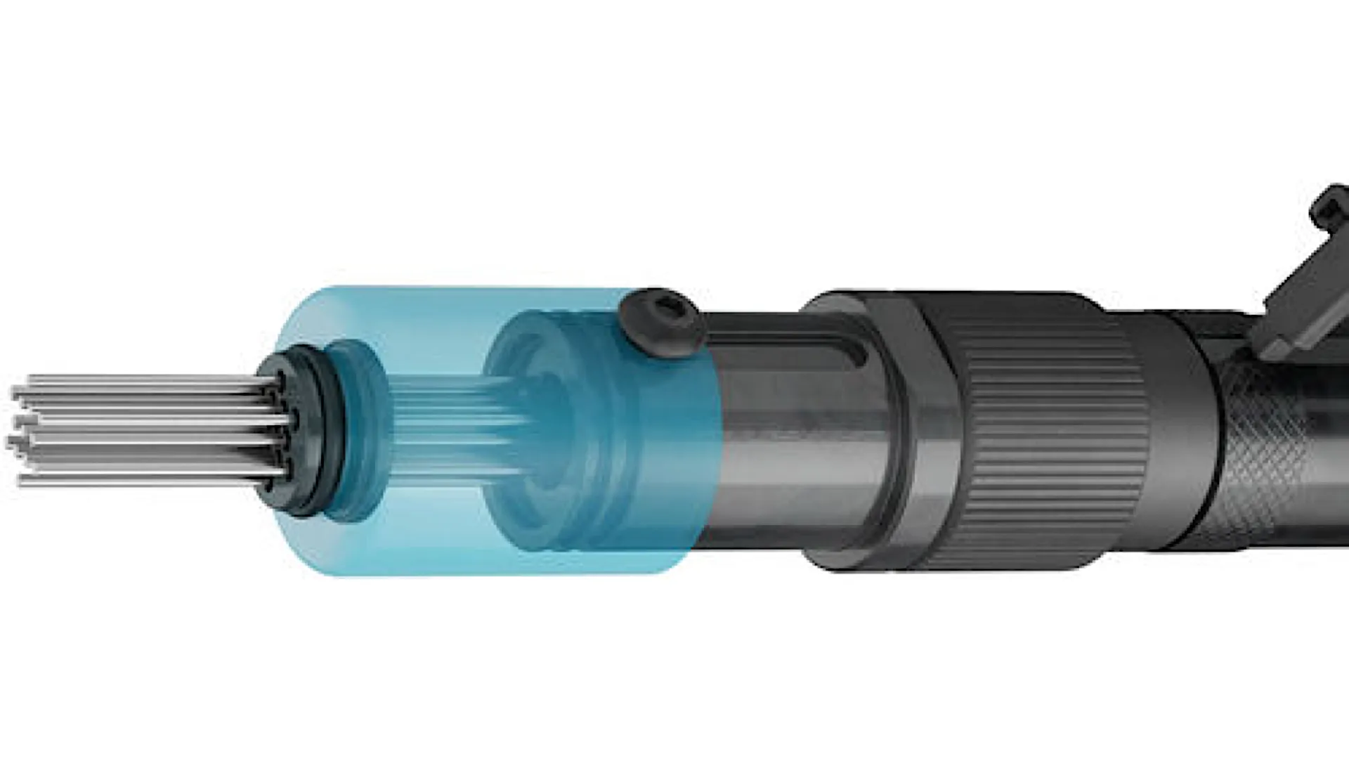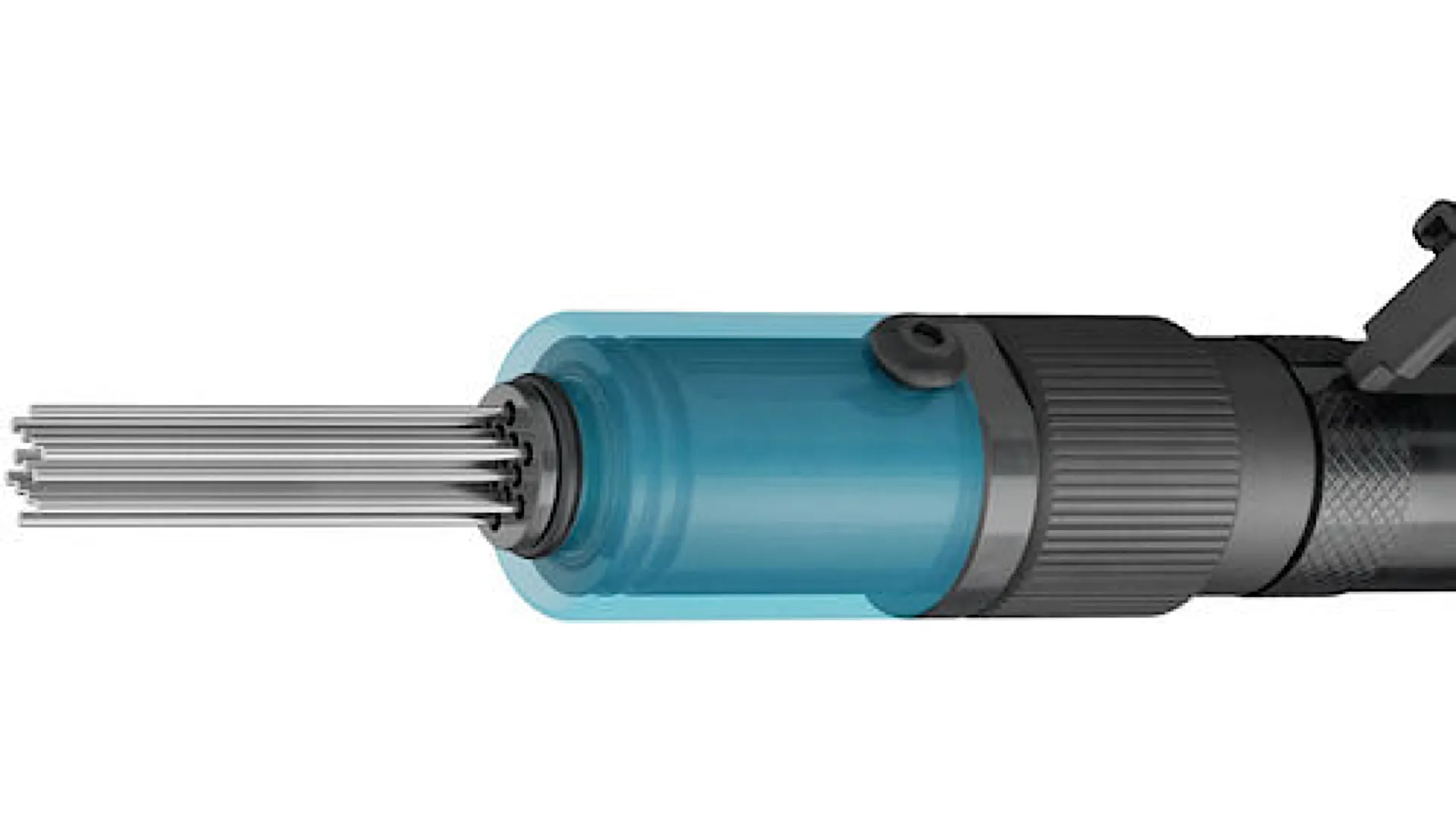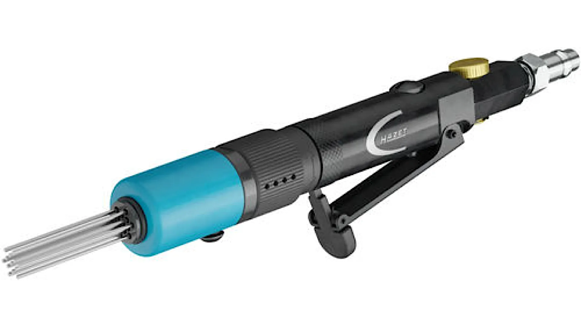 Der neue Mini Nadelentroster 9035M-6 des Remscheider Premium Werkzeugspezialisten könnte man auch als eine perfekte Ergänzung zum 9013MTT sehen, insbesondere dann, wenn Schraubenköpfe oder Schraubenumgebungen in engen Bauräumen von starkem Rost befallen sind. Aber auch für die schonende Reinigung anderer oxidierter, verkalkter oder verschmutzter Bauteile, z.B. etwa von Bremsanlagen oder bei vorbereitenden Arbeiten zum Schweissen, eignet sich der Mini Nadelentroster hervorragend. Mit dem verstellbaren Nadelschlitten mit integrierter Nadelführung, den schlanken 28 mm kurzen Nadeln und der stufenlos einstellbaren Leistung gelingen diese und weitere Arbeiten auch in engen Umgebungen bestens. Die 13 dünnen Edelstahlnadeln ermöglichen eine beschädigungsfreie Bearbeitung auch bei Edelstahloberflächen. Der verstellbare Nadelschlitten mit integrierter Nadelführung gewährleistet lange Standzeiten.
