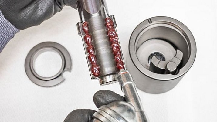 Se la massa battente diretta viene usata quotidianamente, il grasso deve essere rinnovato ogni sei mesi. Nota: dosaggio con mini ingrassatore HAZET 2162M e cartucce 9300N-60. Puoi ricavare il posizionamento e la quantità dalle immagini.