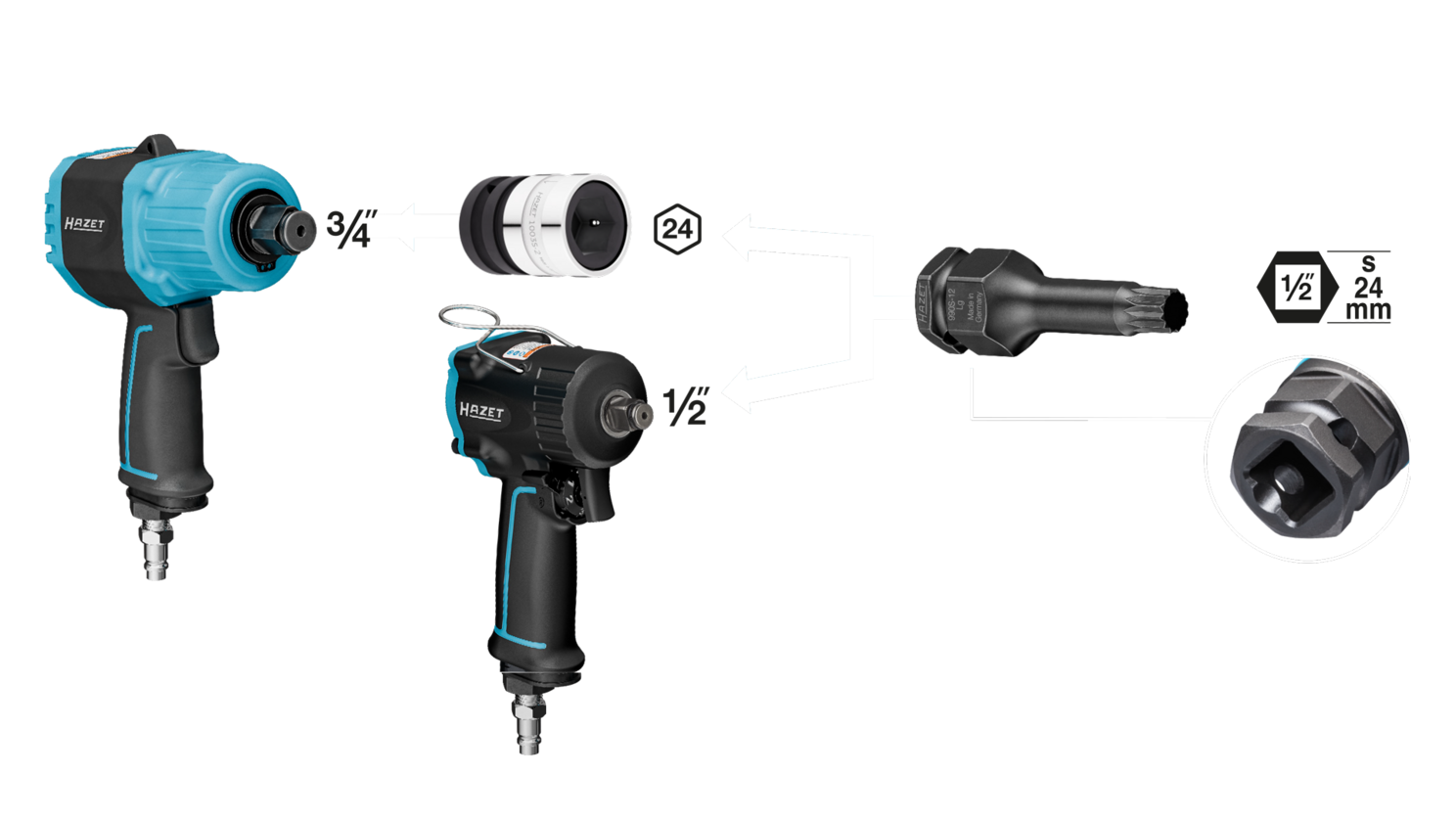 Poate fi combinat cu mai mult de 1.000 de capete de cheie tubulare